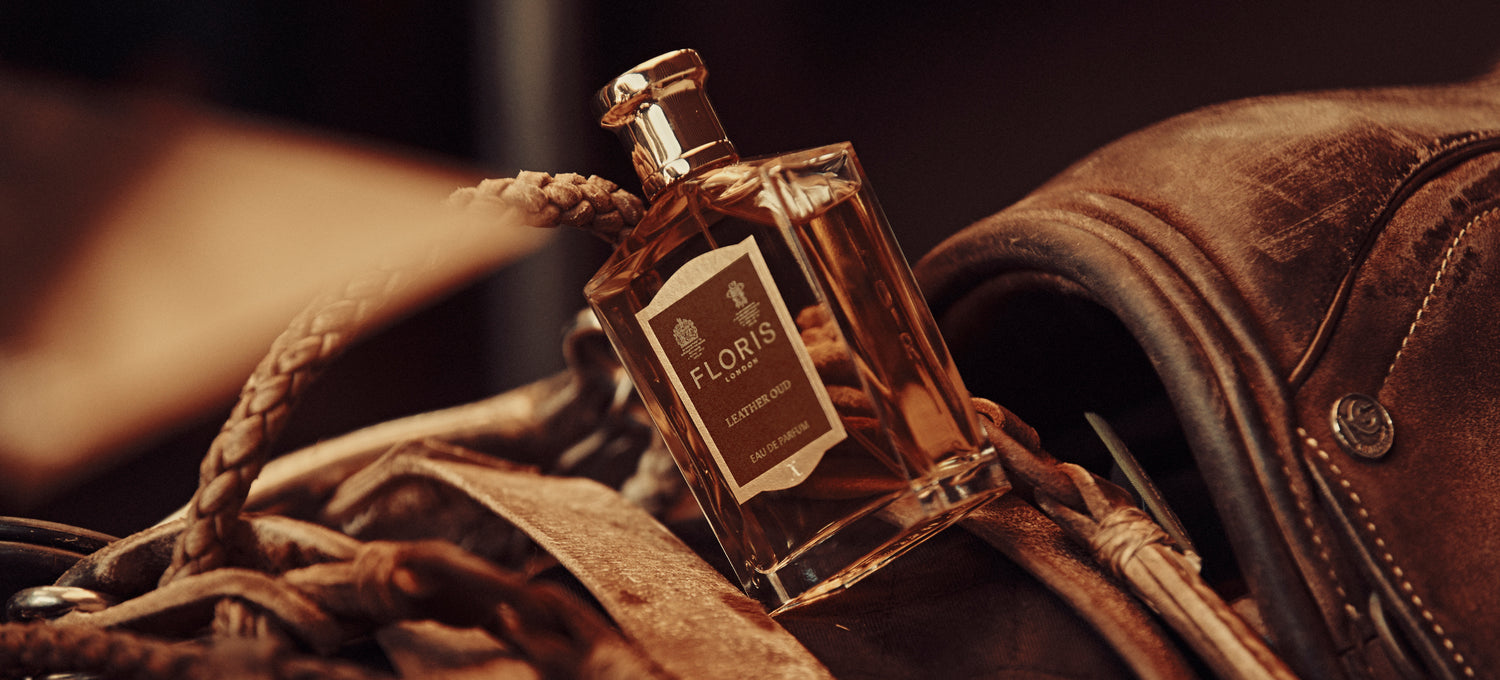 Leather Oud se inspira en una época en la que los nuevos aceites aromáticos se entregaban a la familia Floris en pequeños estuches de cuero, que aportaban su aroma al aroma general de las esencias cuando se abrían con cuidado.